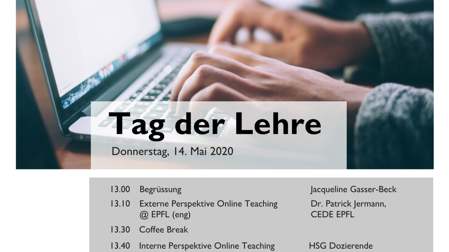 Als dann im März 2020 die Universität St.Gallen geschlossen wurde und alle Vorlesungen nur noch online via Zoom abgehalten werden konnten, stand auch der «Tag der Lehre» auf der Kippe. Soll er überhaupt stattfinden? Wie und in welcher Form dürfen wir ihn überhaupt durchführen? Passt das Thema noch? Dies alles waren Fragen, die uns zu dieser Zeit beschäftigten. Schlussendlich hat sich das Team um Jacqueline Gasser-Beck entschieden, den «Tag der Lehre» als Online-Veranstaltung durchzuführen. Da Webinare typischerweise anstrengender sind als physische Live-Veranstaltungen, wurde das Programm gestrafft und die Veranstaltung auf einen halben Tag gekürzt. Auch wurde aus aktuellem Anlass das Thema angepasst.